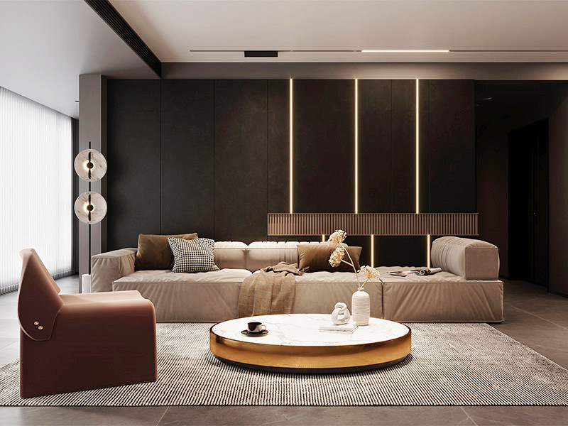 本案定位于现代极简风格,摒弃掉繁复的装饰,赋予家居生活丰富的想象张力,简约与实用并重。整体采用中性色调,稳重大气、不失品味,让居住者忘却繁忙与压力。