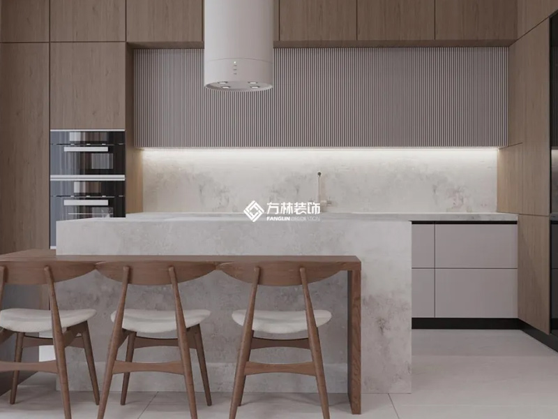 在厨房中间设置一个独立的操作台(岛台),增加操作空间和储物空间,同时可作为餐桌或休闲区使用,适合大平层或别墅等户型。