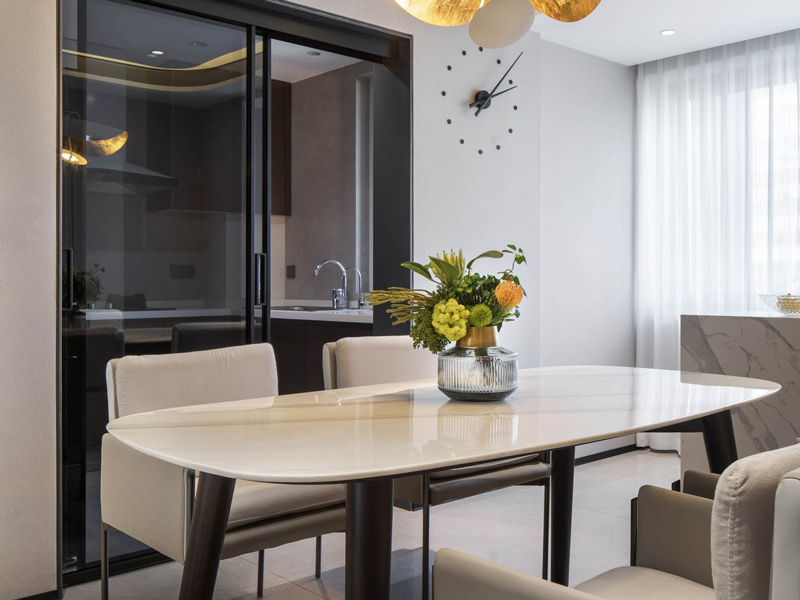 餐厅区域开放式的布局方式让就餐氛围更放松,安置在窗边位置,满足区域采光需求,动线更合理便捷。