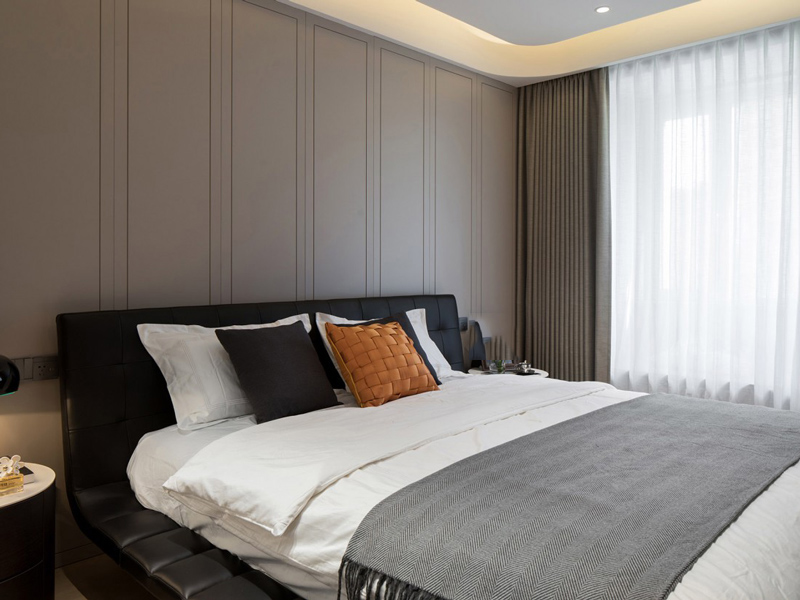 卧室简约线条感背景规矩中不失温度,赋予空间雅致,构建出沉浸式的睡眠环境,提升空间品质感。