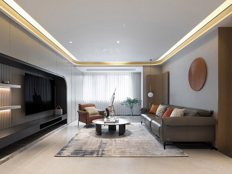 客厅整体采用无主灯设计,赋予空间通透大气感,色彩搭配雅致,让空间整体更显格调与韵味。